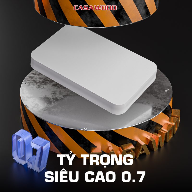 CASAWOOD tự hào là thương hiệu DUY NHẤT trên thị trường Việt Nam sở hữu công nghệ sản xuất ván nhựa với mật độ lên đến 0.7 - cao hơn 30% so với các sản phẩm cùng loại. Mật độ vượt trội này mang đến độ cứng cáp và khả năng chịu lực tuyệt vời, giúp sản phẩm không bị cong vênh, biến dạng trong suốt quá trình sử dụng. Với CASAWOOD, bạn hoàn toàn có thể an tâm về độ bền lâu dài của sản phẩm, ngay cả trong điều kiện sử dụng khắc nghiệt nhất.